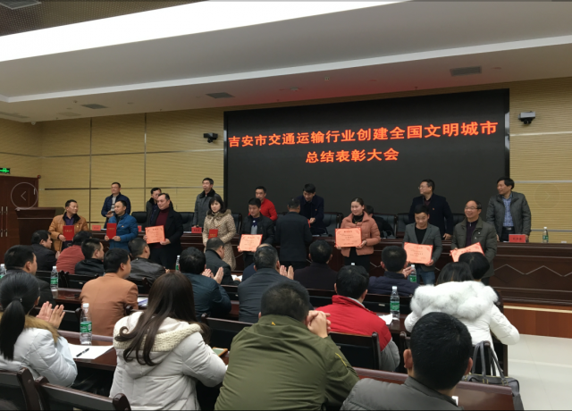 会上,副局长黄坚勇对三年来的创城工作进行了总结,并部署下一步工作;驻局纪检组长赵夫发宣读了《关于表彰吉安市交通运输行业创建全国文明城市工作先进单位、先进个人、优秀司乘员、优秀宣传语、优秀志愿者的决定》;局领导分别为获得通报表彰的先进单位、先进个人代表进行了颁奖;副局长王跃平宣读了《吉安市交通运输行业全国文明城市常态长效巩固提升工作方案》;最后,局长谢海泉做了重要讲话。